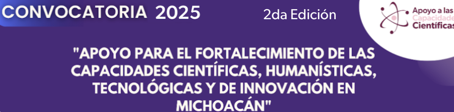 Convocatoria 2025 2da. Edición “Apoyo para el Fortalecimiento de las Capacidades Científicas, Humanísticas, Tecnológicas y de Innovación en Michoacán”