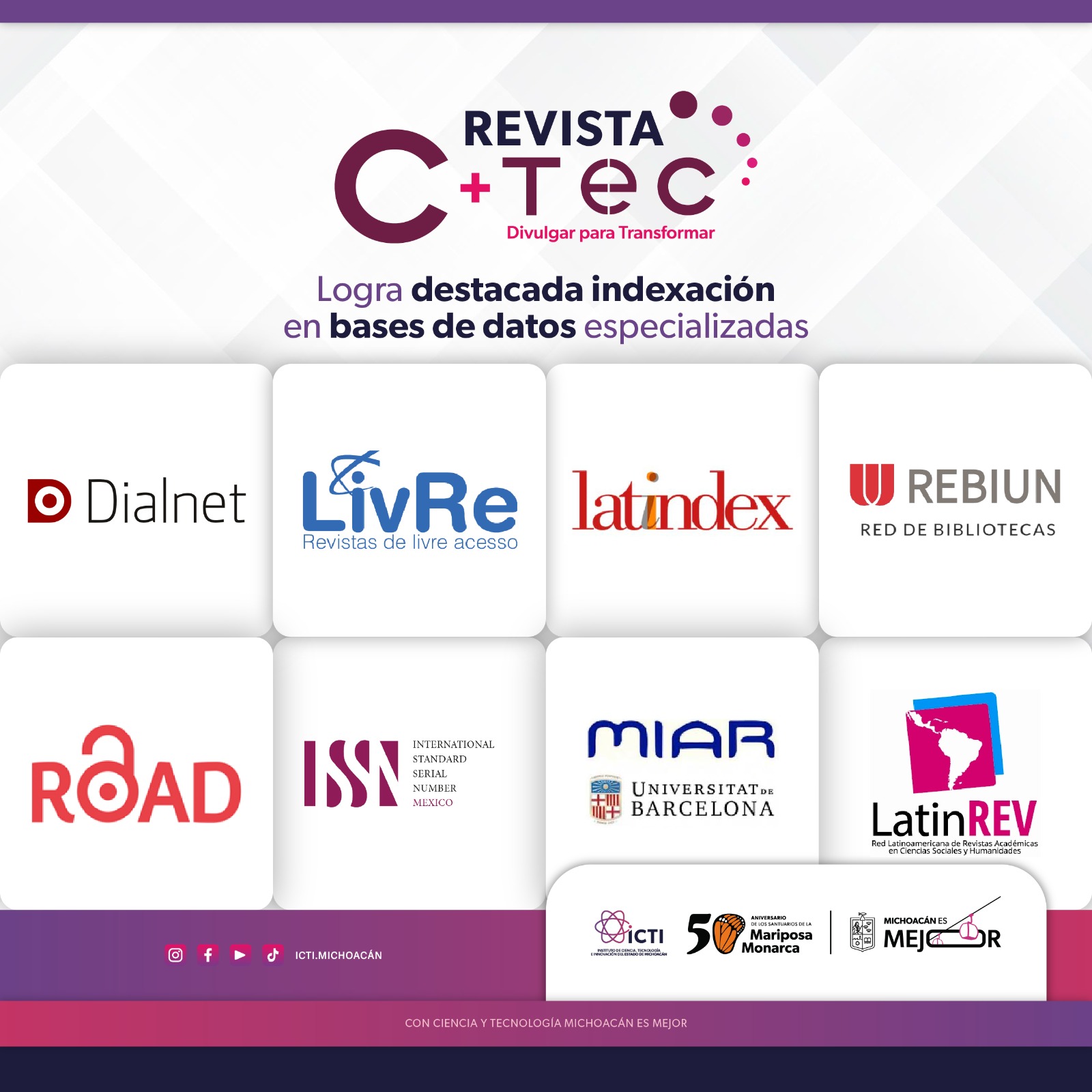 La indexación posiciona a C+Tec como un canal confiable y profesional para divulgar investigaciones, experiencias y reflexiones relacionadas con ciencia, tecnología e innovación generadas desde Michoacán.